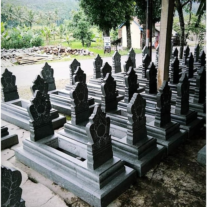 Sepanjang jalan raya pasti menemukan home industry batu alam termasuk pembuatan batu nisan.