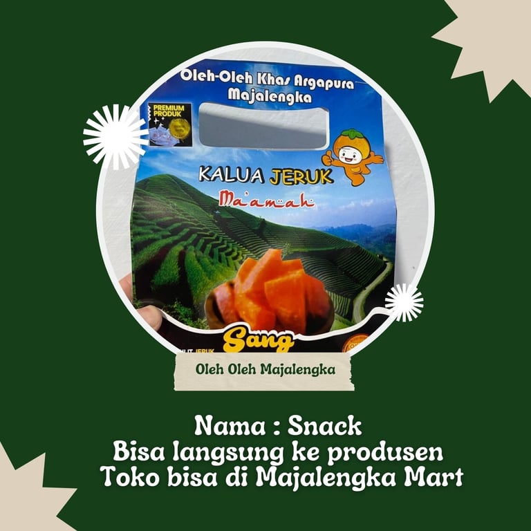 sudah tidak asing lagi jika terdapat banyak hasil pertanian di Kabupaten Majalengka yang mana buah buahan sayuran ataupun bahan lainnya dijadikan makanan snack, keripik dan kuliner di majalengka.